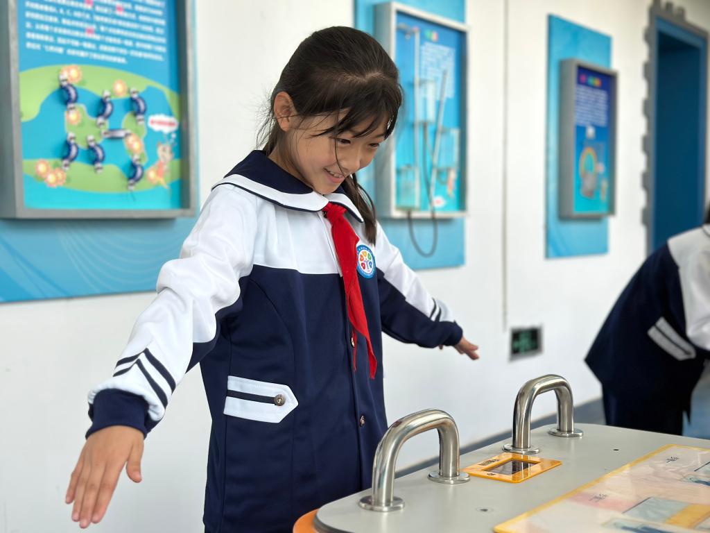 5月30日,西宁市西关街小学开展科普活动,学生在学校的“科普长廊”体验。新华社记者 张子琪 摄
