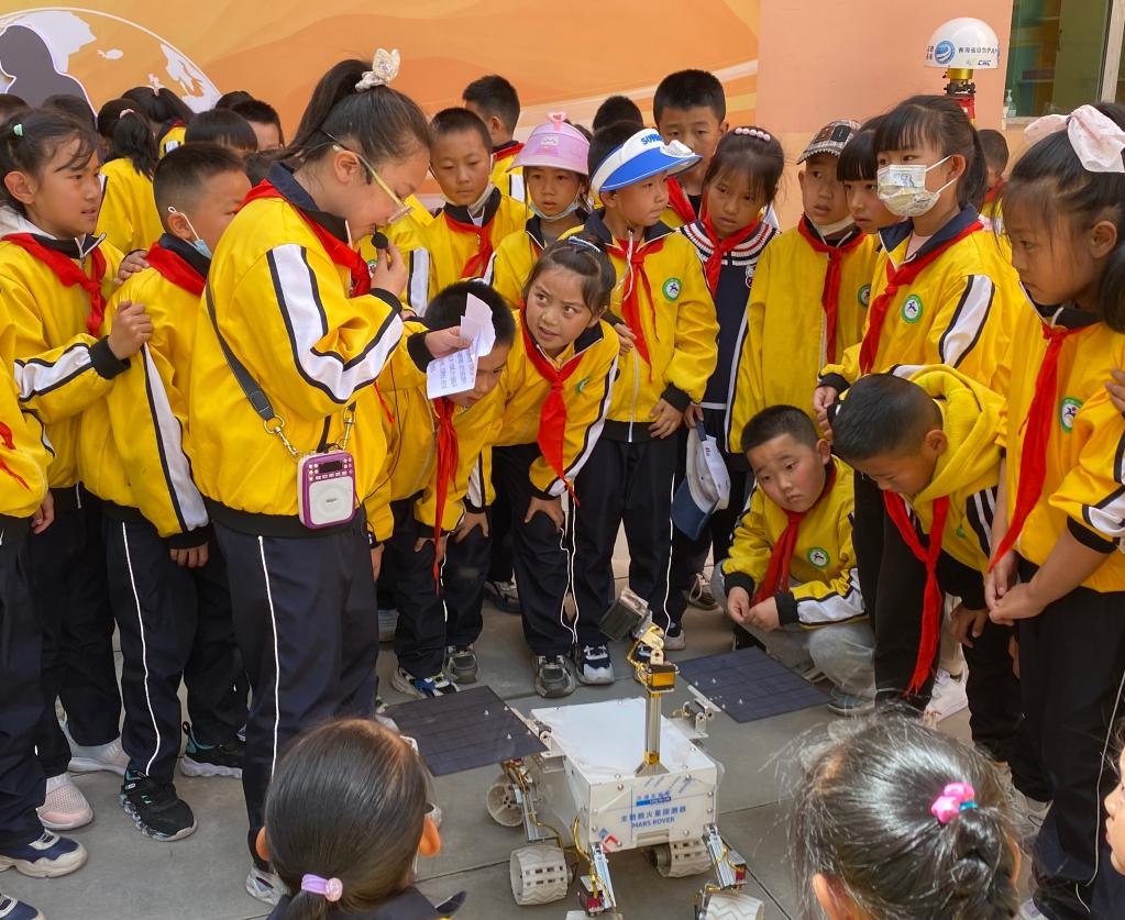 西宁市行知小学学生代表在为同学们做科普解说。(行知小学供图)