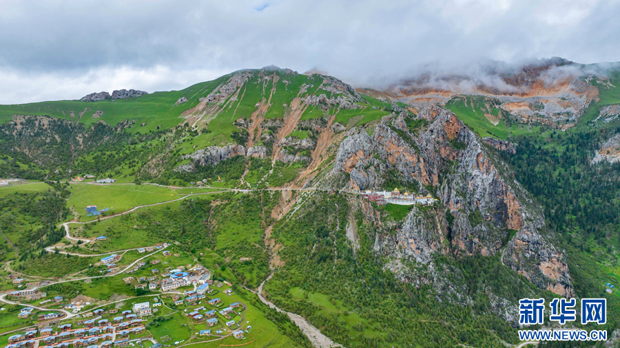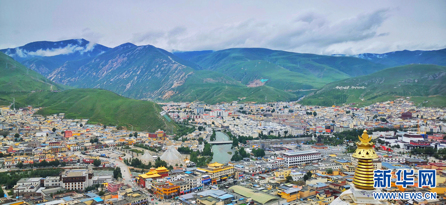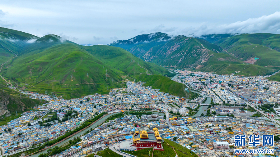 图为青海省玉树藏族自治州玉树市的夏日风光(无人机全景照片)。新华网发(宋忠勇 摄)