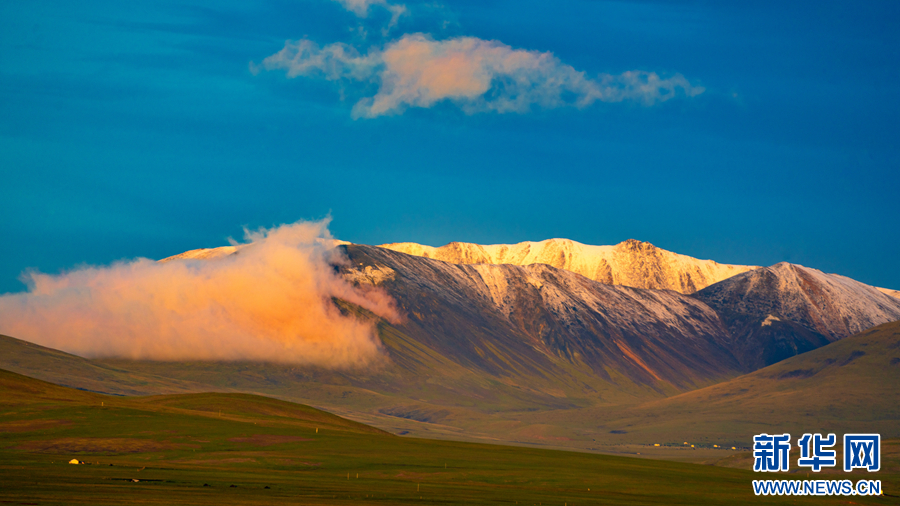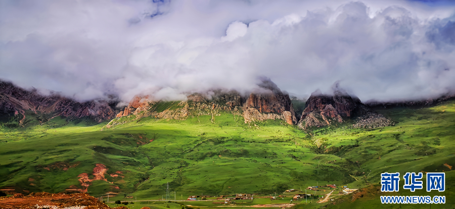 时值盛夏,青海省玉树藏族自治州景色怡人,群山和草原在蓝天白云的映衬下构成壮美的画卷。