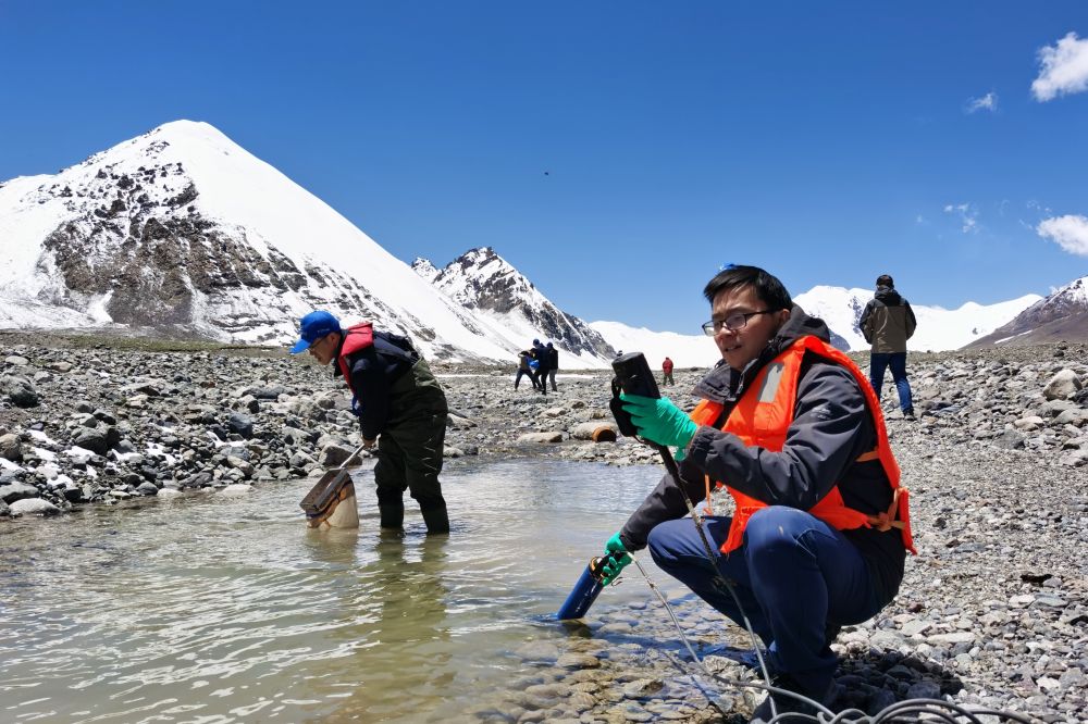 来自长江科学院河流研究所的科考队员徐志成和杨绪海,每到一个采样点就采集河道床沙和悬沙样品,测量河宽、水深、比降、流速,对比此前科考观测数据,分析长江源区河道水沙输移特性和河床演变情况。