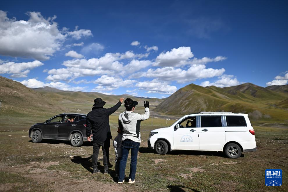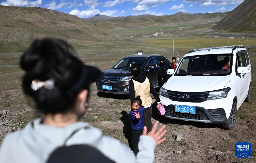 在青海省玉树藏族自治州曲麻莱县秋智乡布甫村阳光幼儿园,孩子们在放学后与老师告别(9月14日摄)。新华社记者 张宏祥 摄