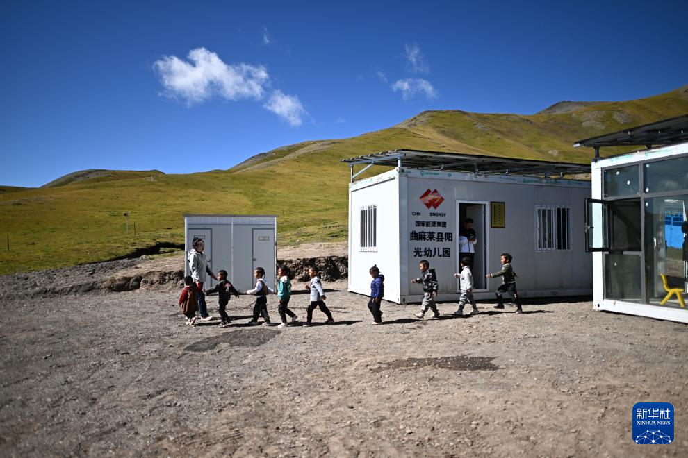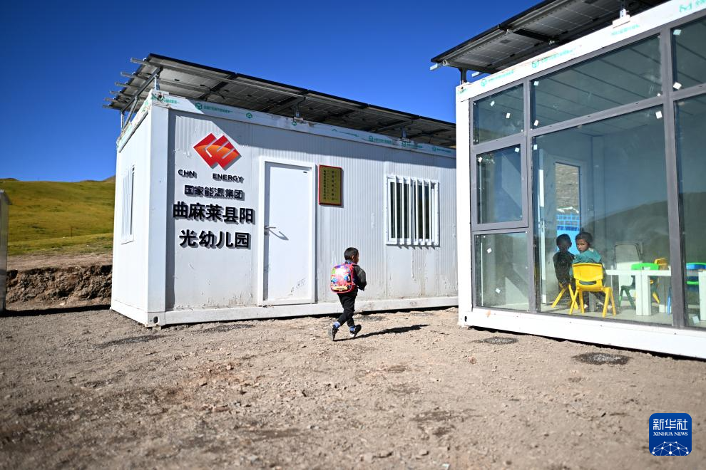 作为曲麻莱县定点帮扶单位,国家能源集团自2022年起累计投入1350万元,在曲麻莱县建设15所阳光幼儿园。阳光幼儿园为集装箱式房屋,配备屋顶离网储能光伏系统,可以满足供暖、照明等需求。幼儿园招收居住在周边牧场的儿童,让孩子们在离家不远处就能接受学前教育。