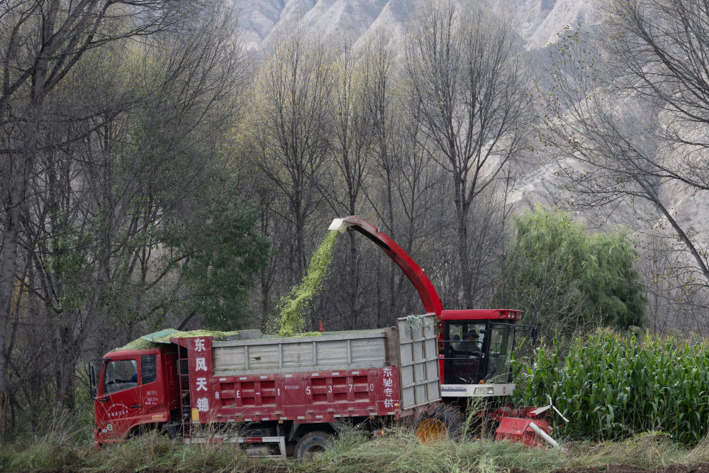 眼下正值青贮玉米收获的季节。位于青海省海南藏族自治州的贵德县,青贮玉米收割的热闹场景随处可见,一派喜获丰收的景象。