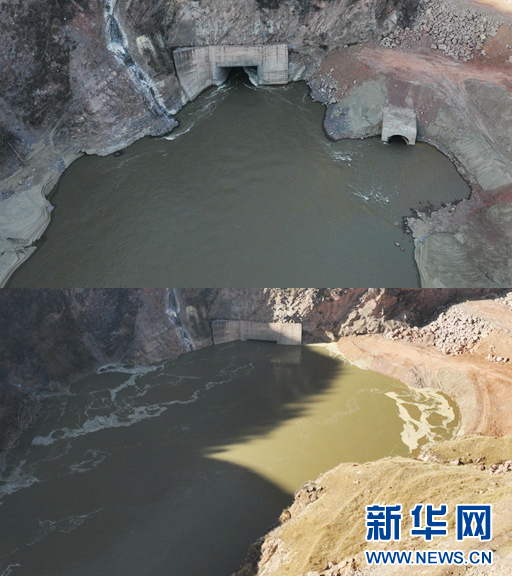 玛尔挡水电站蓄水前后对比图。(上图为蓄水前、下图为蓄水后)