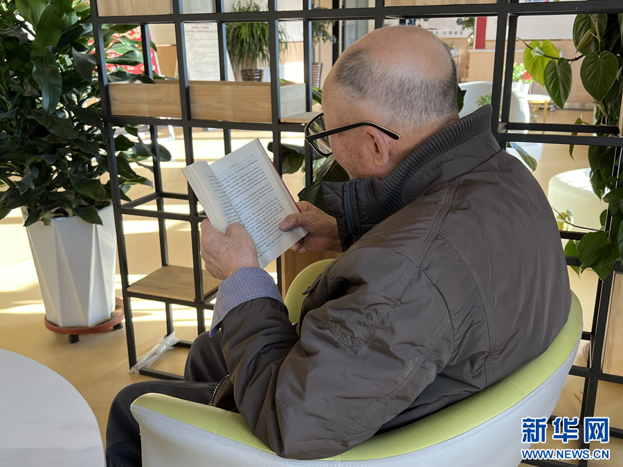刘忠义在养老服务中心读书。新华网 鱼昊 摄