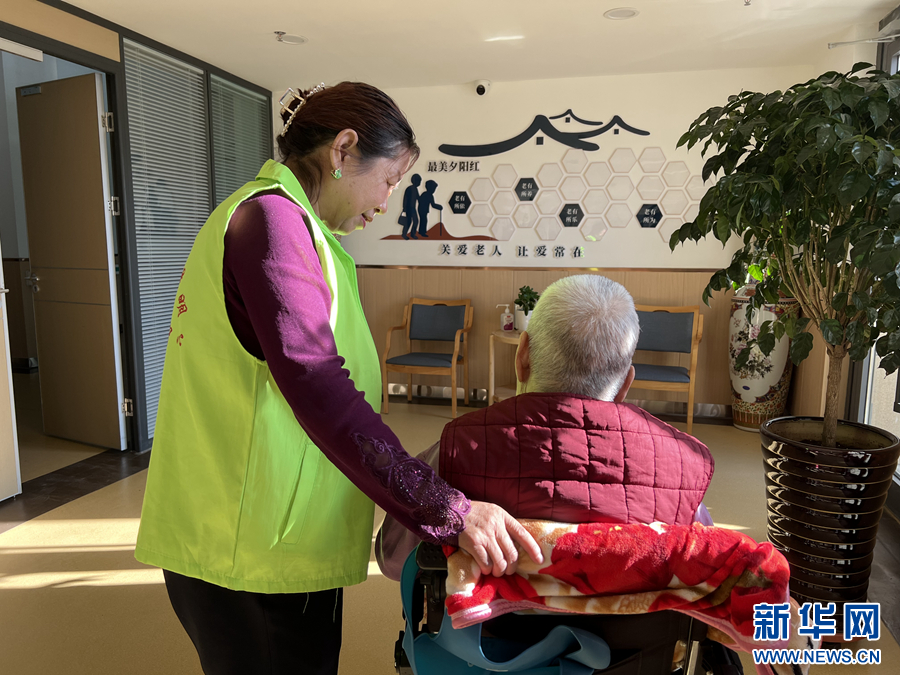 养老服务中心工作人员为老年人提供照料服务。新华网 鱼昊 摄
