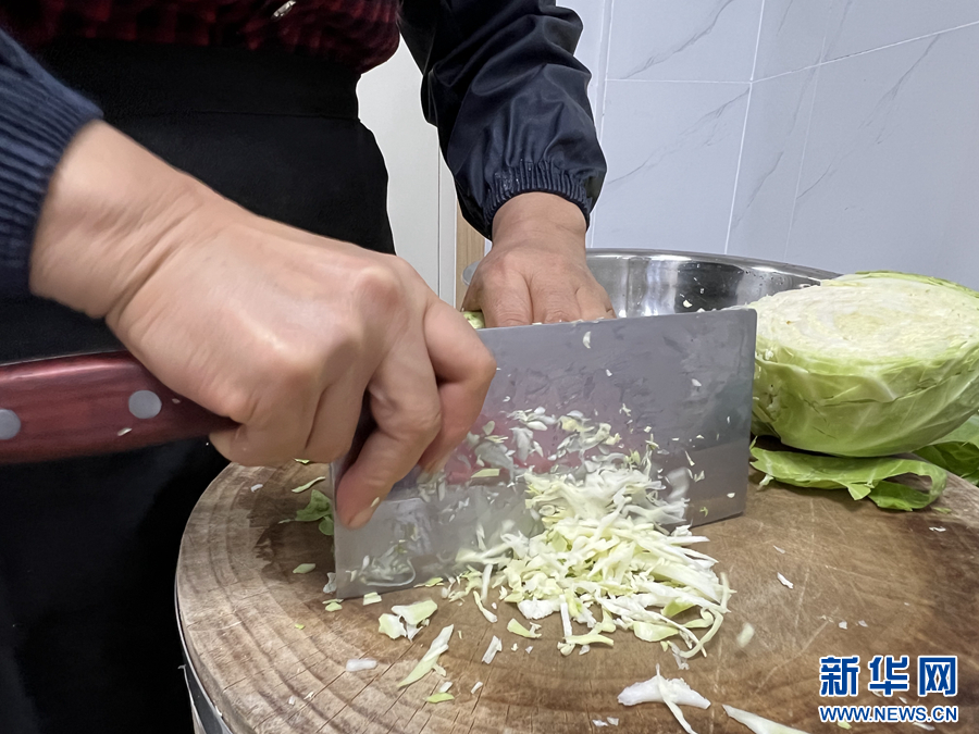 后厨工作人员准备午餐。新华网 鱼昊 摄