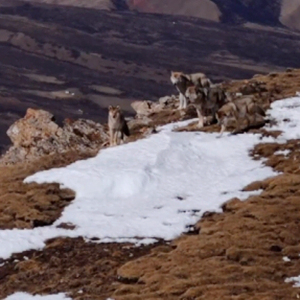 近日,青海省海北藏族自治州祁连县峨堡镇白石崖村牧民昂秀在峨堡林场辖区天棚河附近放牧时拍到五匹狼结伴而行的珍贵画面。近年来,随着祁连山生态环境的恢复,保护区内的生态环境持续向好,棕熊、雪豹和兔狲等诸多珍稀野生动物在祁连山出没。