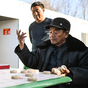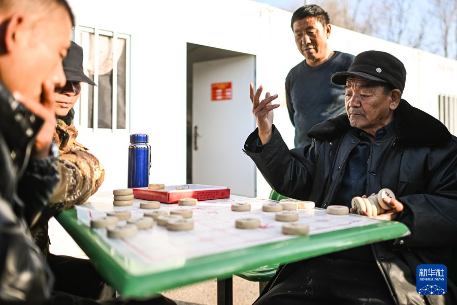 1月1日,在青海省海东市民和回族土族自治县官亭镇喇家村安置点,村民在下象棋。新华社记者 张龙 摄