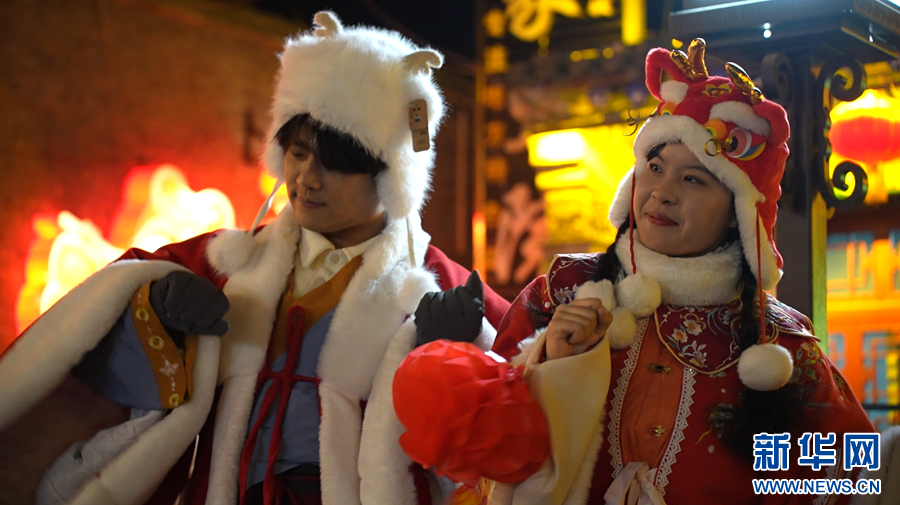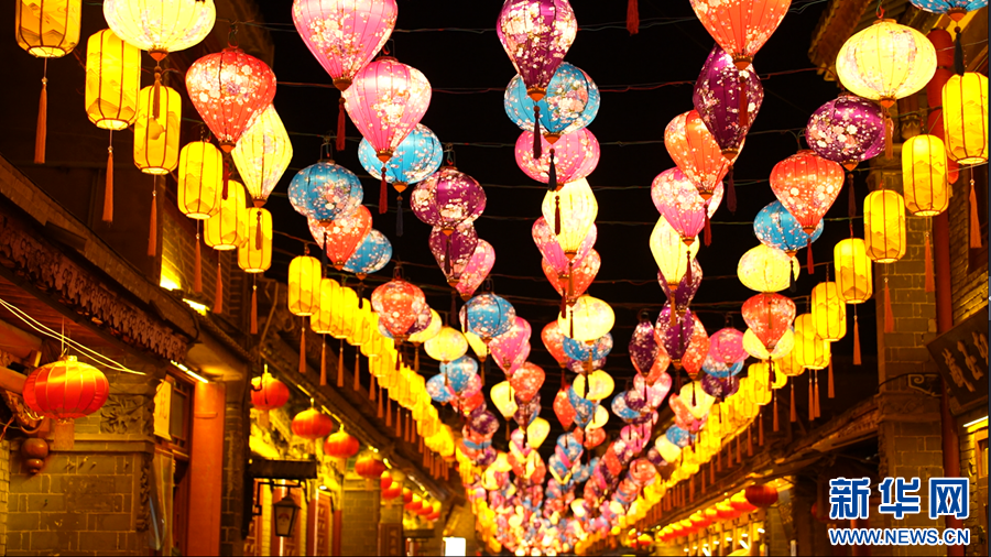 市民在丹噶尔古城逛灯会。新华网发(任元昊 摄)