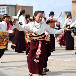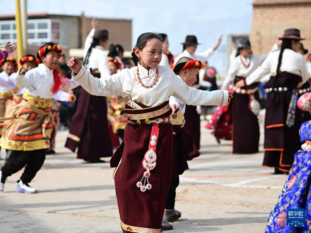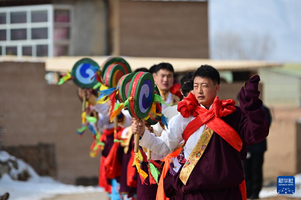 当日,青海省海东市循化撒拉族自治县道帏藏族乡贺隆堡村举办迎新春活动,当地藏族群众载歌载舞,喜迎新春。2024年农历新年与藏历新年是同一天。