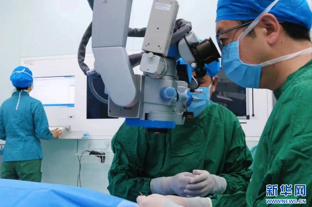 2024年2月19日,青海省人民医院眼科副主任医师祁恩在为青光眼患者手术。(受访者供图)