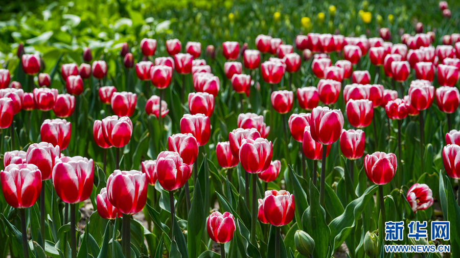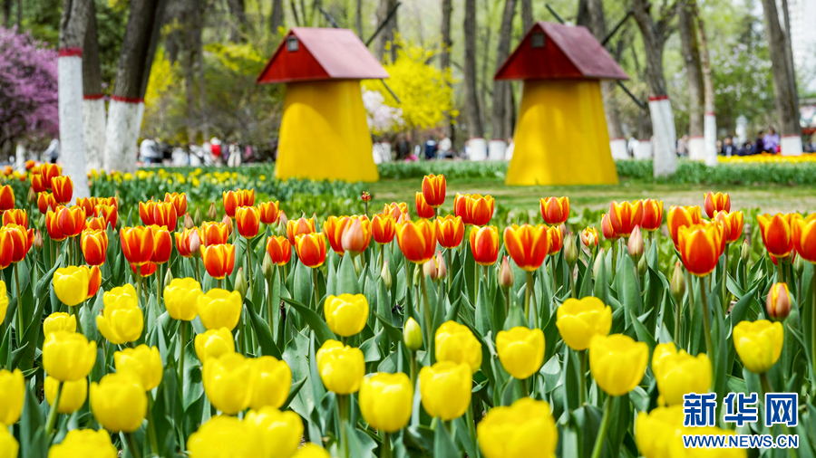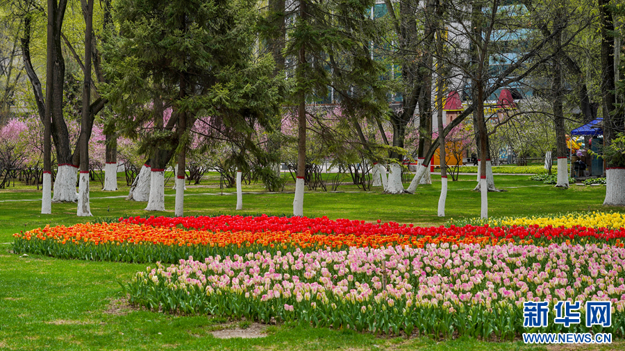 图为西宁市人民公园内绽放的郁金香。新华网发(宋忠勇 摄)