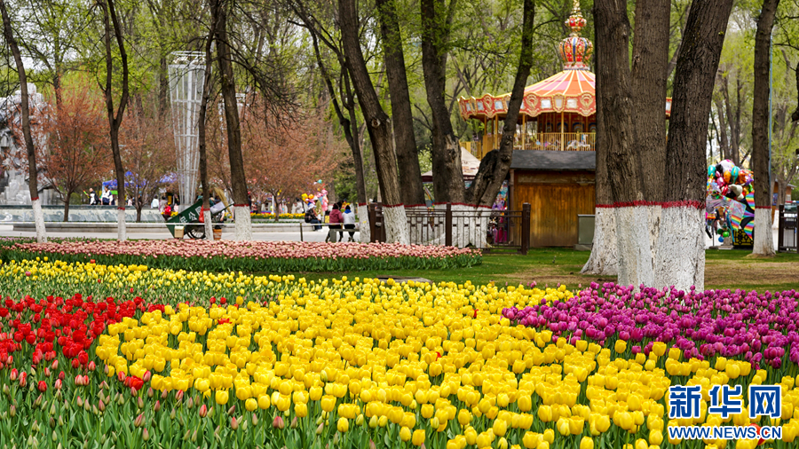 春和景明,百花盛开。近日,青海省西宁市人民公园内的郁金香竞相绽放,吸引不少市民游客前往踏春观赏。置身于此,仿佛踏入了五彩斑斓的梦境,每一朵郁金香都娇艳欲滴,美得令人心醉。游人们欣喜地奔向花海,用手机定格,将春色装满相册。