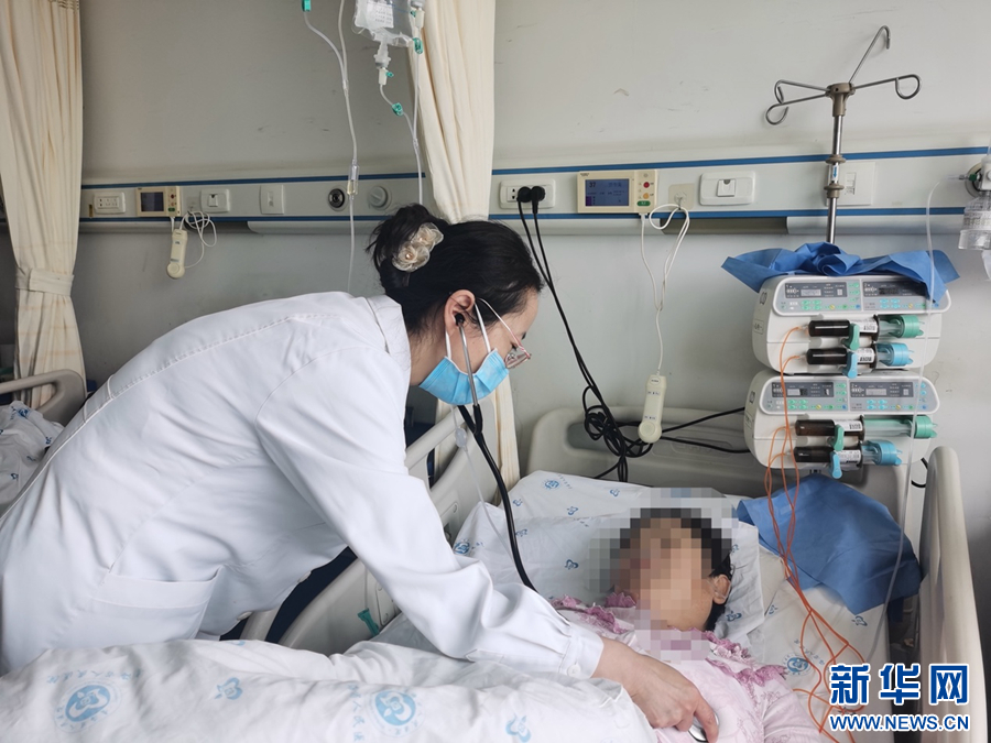 5月15日,青海省人民医院心血管内科主任医师苏晓灵在救治高血压并发症患者。(受访者供图)