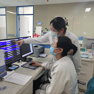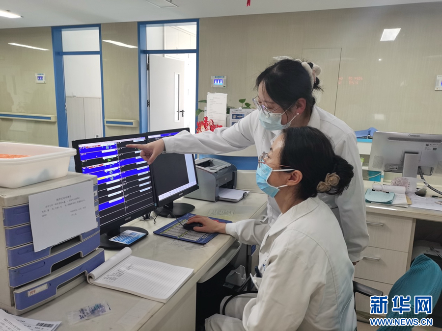 5月15日,青海省人民医院心血管内科主任医师苏晓灵(左)在和同事分析患者病历资料。(受访者供图)