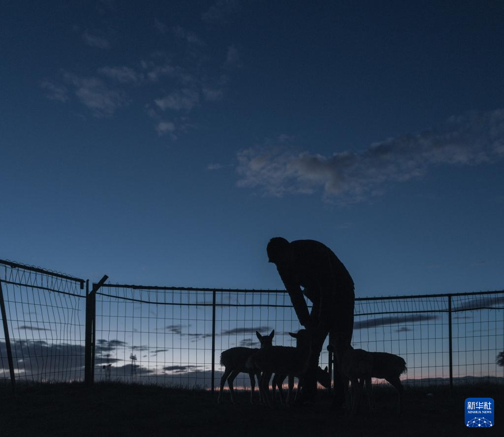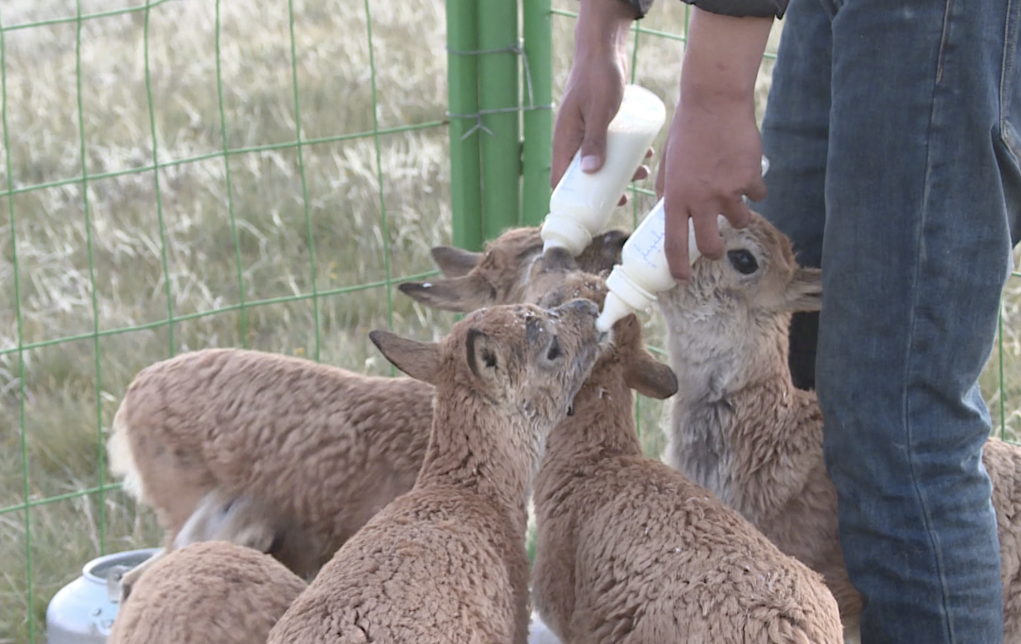 10只小藏羚羊在草地上撒欢儿,看到提着奶瓶来喂羊的巡山队员,就会紧跟在“奶爸”的身后,时不时用头蹭一蹭“奶爸”的裤脚。这是记者近日在位于青海省的可可西里野生动物救助中心看到的温馨一幕。