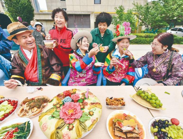 9月13日,西宁市南川西路街道福禄巷南社区党委举办“国庆中秋邻里宴 共铸民族团结情”双节庆典活动。活动以辖区居民共唱《歌唱祖国》拉开序幕,展现了大家对祖国的热爱与祝福。活动中,每家端出一道拿手好菜,大家共同品鉴美食,交流风俗文化,在互动中增进了解,每一位参与者都感受到了大家庭的温暖,现场一片欢声笑语。