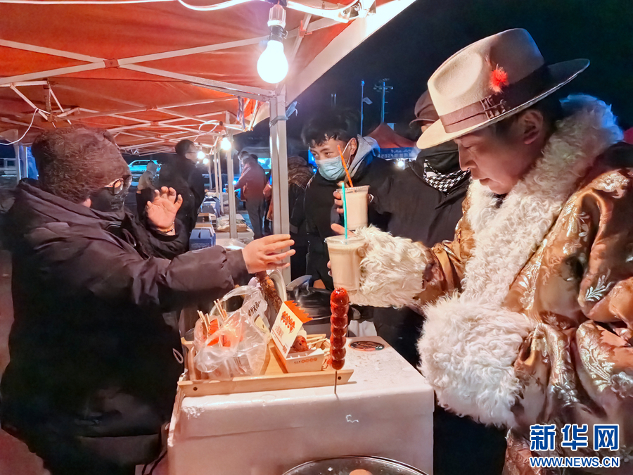 活动现场旅游产品推介,游客购买奶茶。新华网 鱼昊 摄