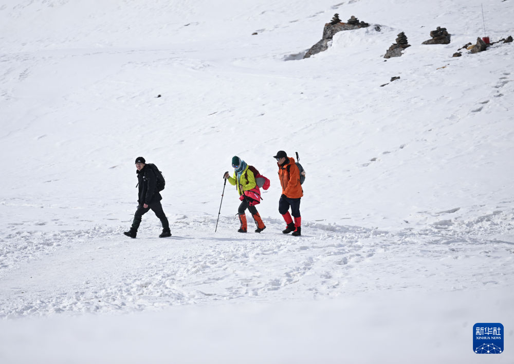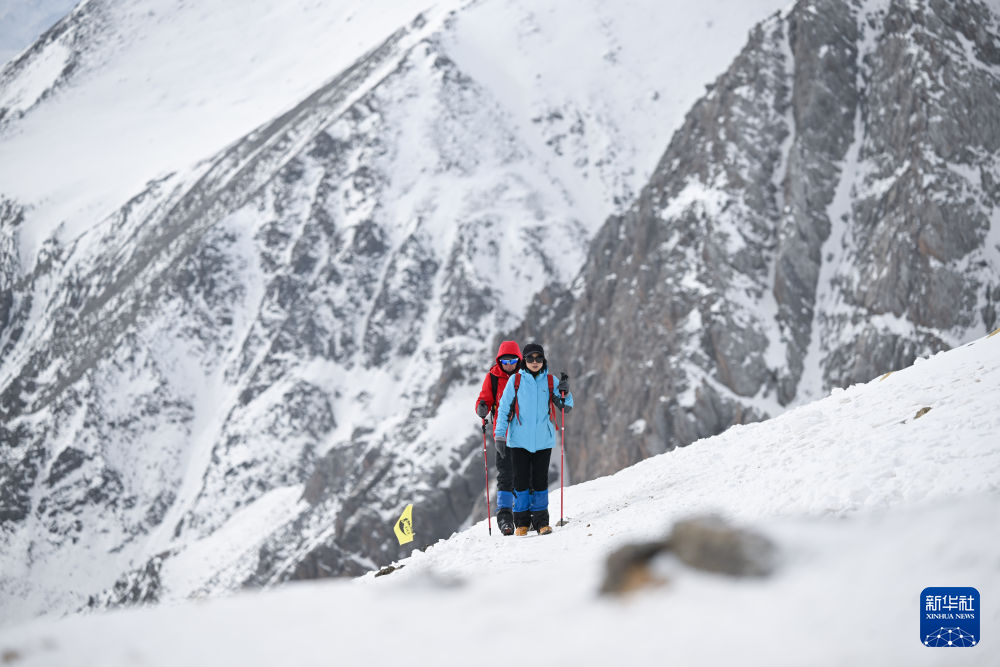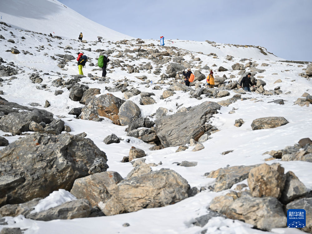 1月1日,登山爱好者在攀登岗什卡雪峰。新华社记者 张龙 摄