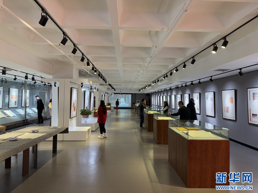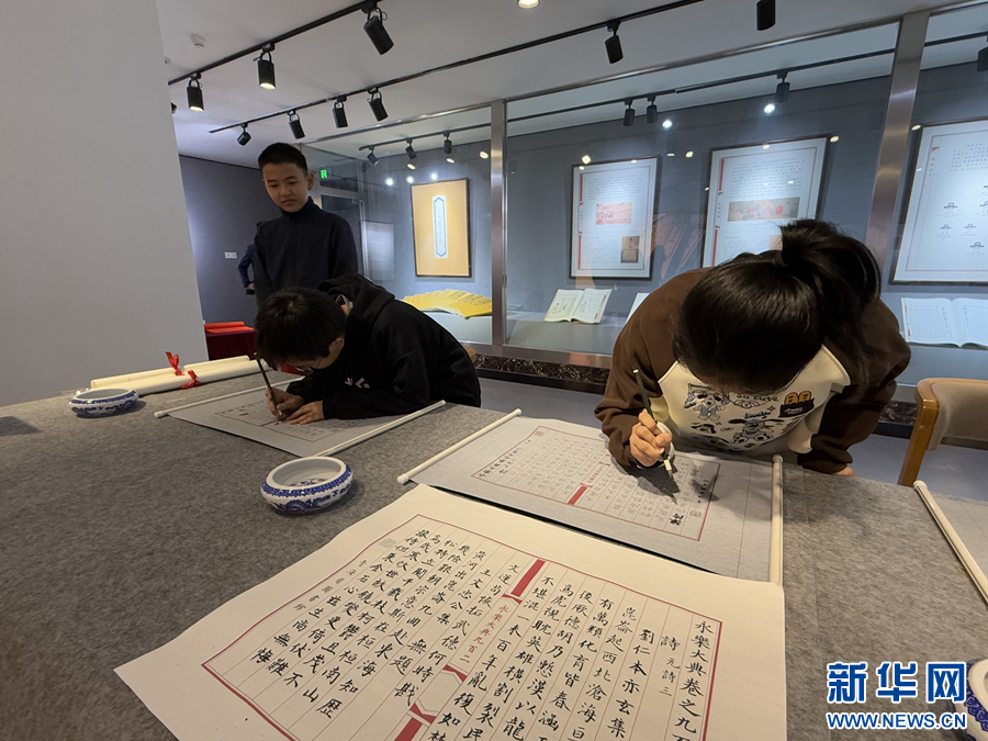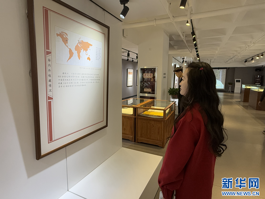两名观众临摹《永乐大典》原文。新华网 鱼昊 摄