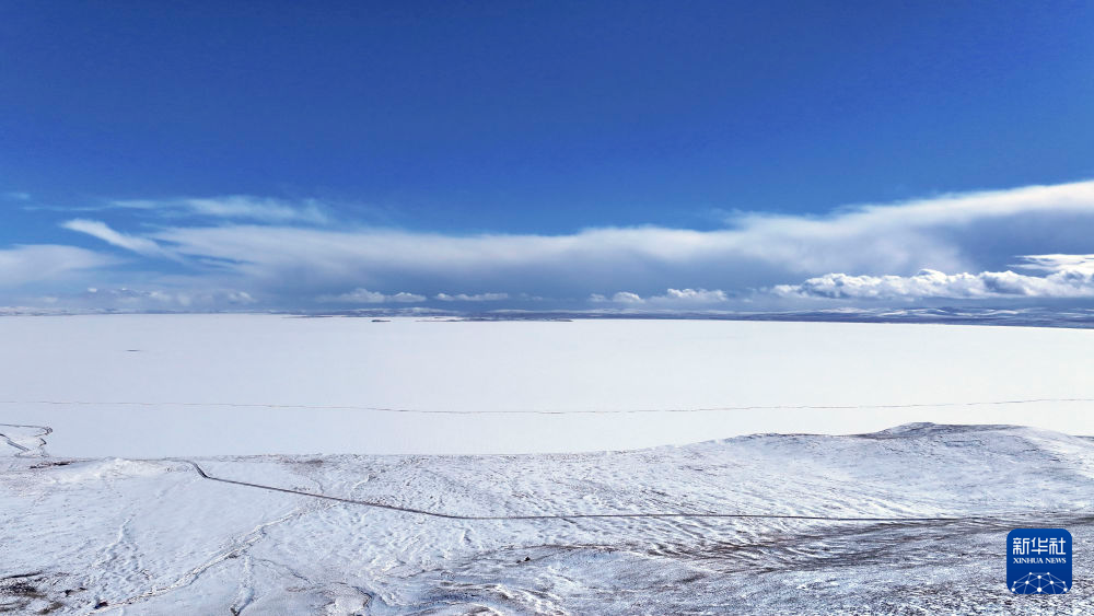 这是2月22日拍摄的雪后的鄂陵湖一角(无人机照片)。新华社记者 张宏祥 摄