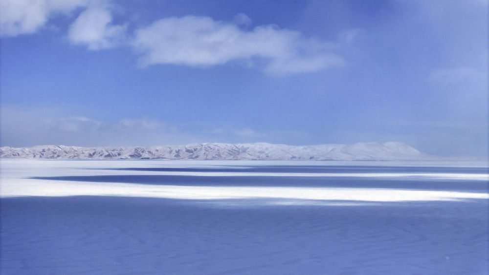 这是2月22日拍摄的雪后的鄂陵湖一角(2月22日摄)。 新华社记者 张宏祥 摄