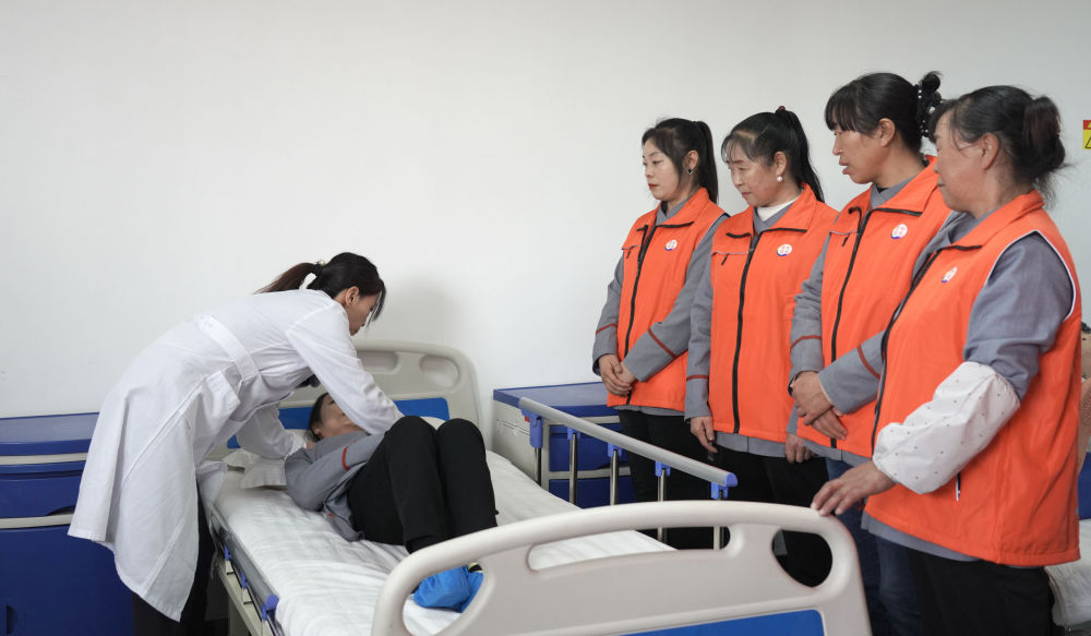 “大家在帮助病人乘坐轮椅前,要先将轮椅停靠在离床尾40公分处,半蹲到床前观察、询问病人申请状况……”站在模拟病床前,讲师费他义花为近20名学员讲授医疗护理专业知识,学员们认真听讲,不时插话提问。