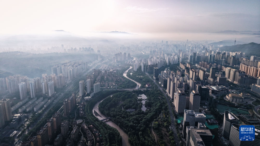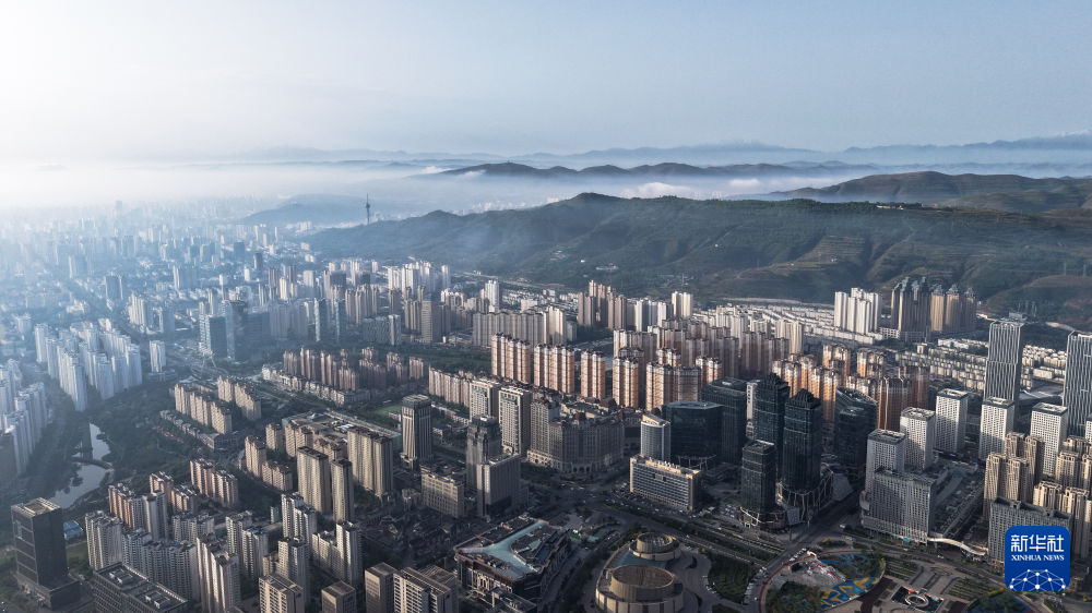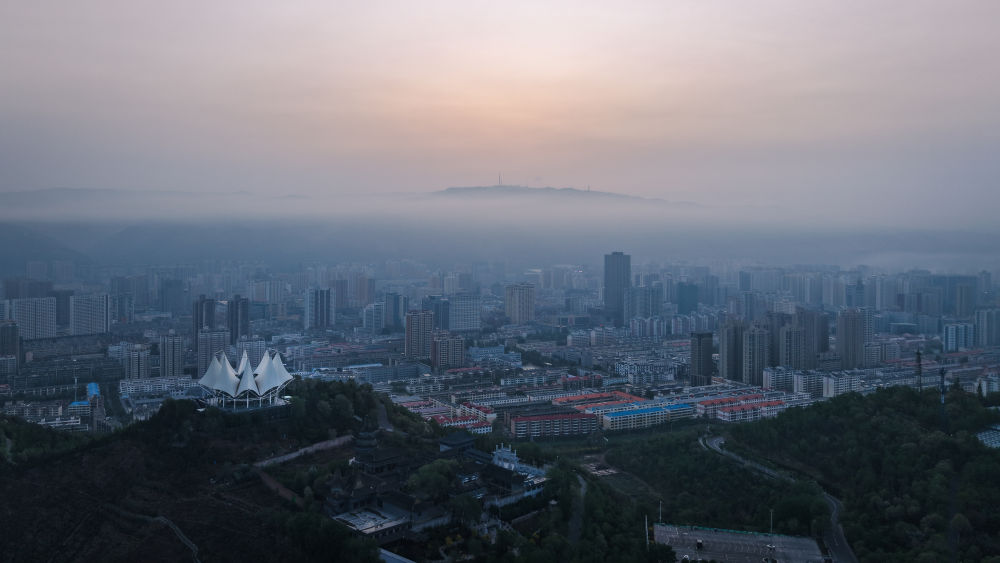 雨后初霁,青海省西宁市云雾缥缈,美不胜收。