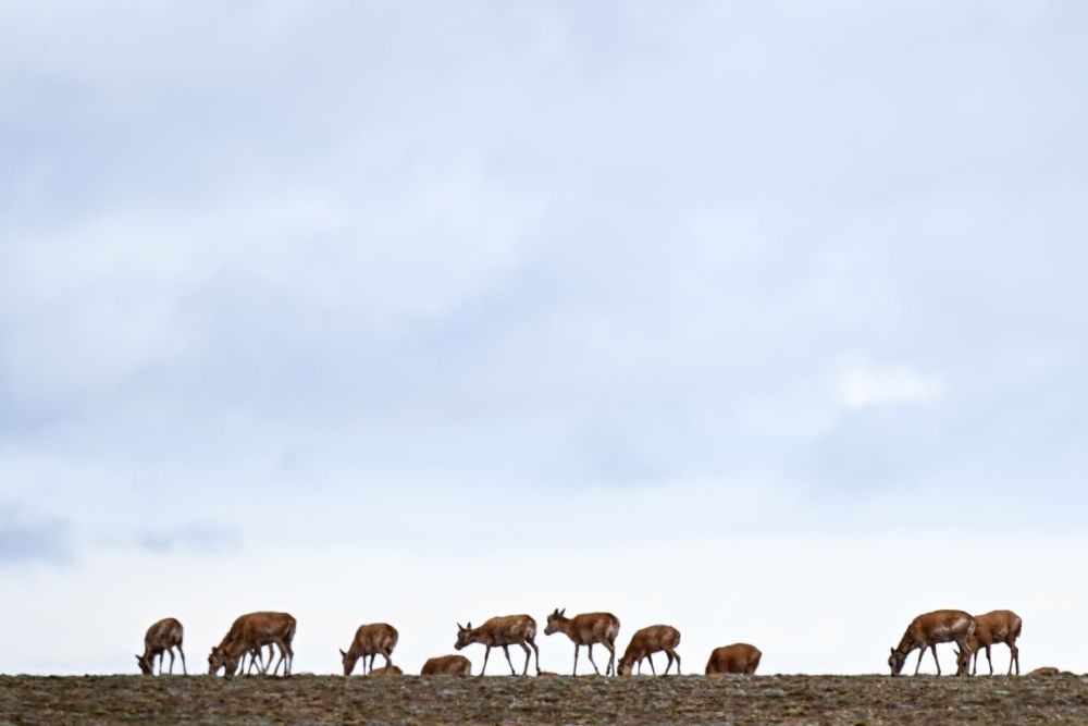 2024年5月27日,藏羚羊在可可西里五道梁地区迁徙。新华社记者 张龙 摄