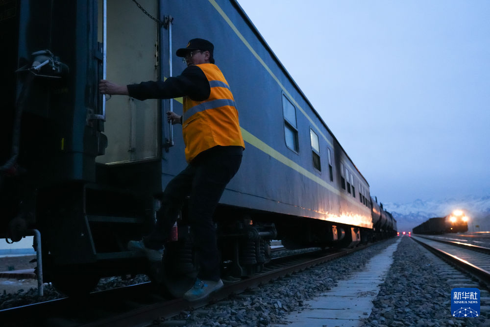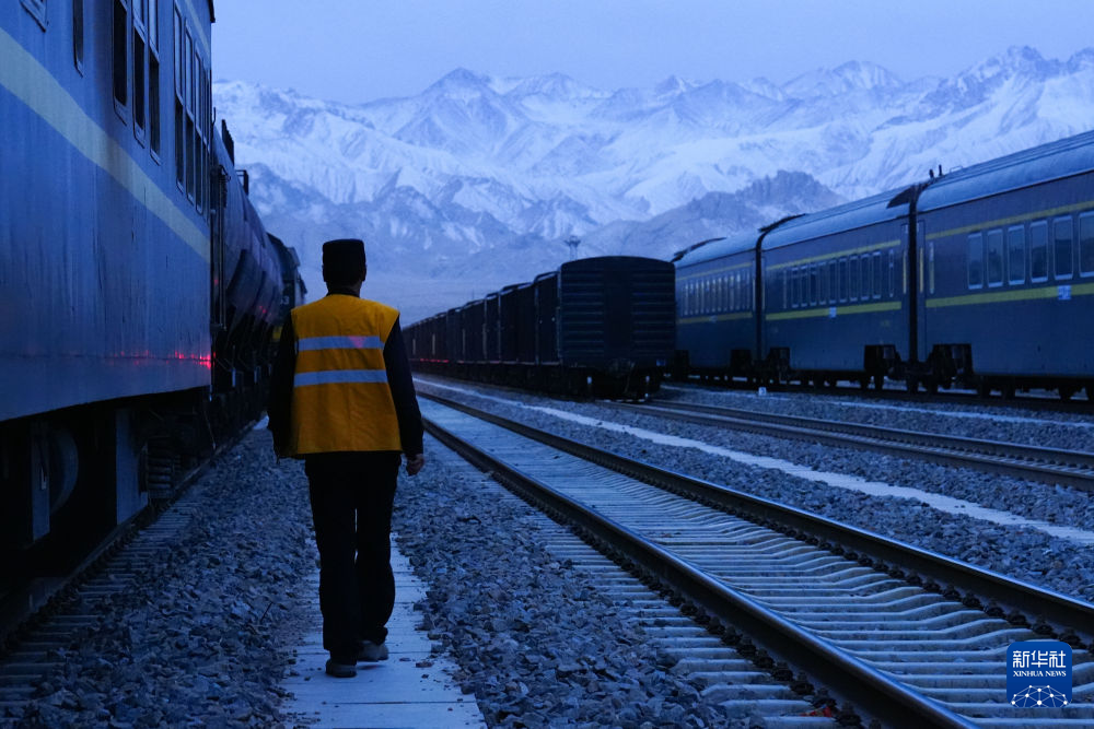 2月4日,韩景泉在列车避让等候途中下车巡视。新华社记者 齐芷玥 摄
